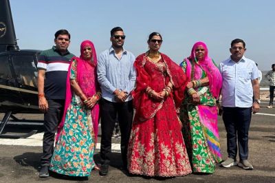 इस दौरान पिता सीताराम चौधरी ने अपनी बेटी चांदनी एवं दामाद राम को शुक्रवार दोपहर 12 बजे हेलीकॉप्टर में बिठाकर विदा किया। कोलाना हवाई पट्टी से हेलीकॉप्टर ने उड़ान भरी। इस मौके पर दूल्हा और दुल्हन दोनों पक्ष के रिश्तेदार मौजूद रहे।