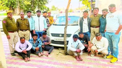 राजस्थान के झुंझुनूं शहर में पीरूसिंह सर्किल पर बैंक के पास इलेक्ट्रोनिक्स की दुकान में 60 लाख रुपए की चोरी समेत अन्य वारदातों को अंजाम देने के आरोप में पुलिस ने अंतरराज्यीय गैंग के छह सदस्यों को गिरफ्तार किया है। गैंग ने गुरुवार तड़केइलेक्ट्रोनिक्स की दुकान का शटर तोड़कर अंदर घुसे और मोबाइल व नकदी चोरी कर ले गए। घटना के बाद पुलिस ने पीछा कर अंतरराज्यीय गैंग के राहुल (20) पुत्र प्रकाश, कुलदीप (36) पुत्र प्रकाश निवासी रामसिंह कोलोनी हांसी (हरियाणा), लखन (28) पुत्र सुखबीर, सुखबीर पुत्र धर्मपाल निवासी खाडांखेड़ी थाना नारनोद, राजेश (39) पुत्र ओमी, निवासी सोरखी (हरियाणा) और मोखरा हरियाणा के रहने वाले फुल कुमार (42) पुत्र रामकरण उर्फ चिन्नू को बीड़ के पास हाइवे पर गिरफ्तार किया है। कुलदीप गैंग का मुख्य सरगना है। आरोपियों में दो बाप-बेटे, दो भाई व दो अन्य शामिल हैं। आरोपी बसों में चढ़ जाते हैं और मौका देखते हैं बैग में चीरा लगाकर सामान चोरी कर लेते हैं। शहर में तीन चोरी की वारदातों के अंजाम देकर फरार हो गए थे। गुरुवार को आरोपी फिर से चोरी करने आए और इलेक्ट्रोनिक्स की दुकान में वारदात को अंजाम दिया। सूचना के बाद कोतवाली पुलिस मौके पर पहुंची और साक्ष्य जुटाए।