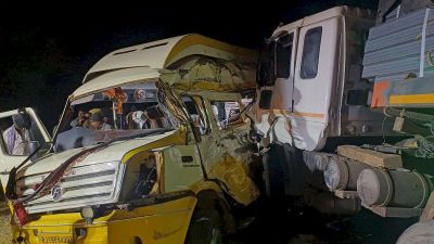 - एक बालिका व 12 महिलाओं सहित 21 घायल, पुष्करणा बा्रह्मण परिवार के लोग, ट्रेलर व बस में भिड़ंत