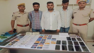 - तीन युवक गिरफ्तार, 18 मोबाइल, 26 आधार कार्ड, 46 डेबिट कार्ड व 4 लाख रुपए जब्त