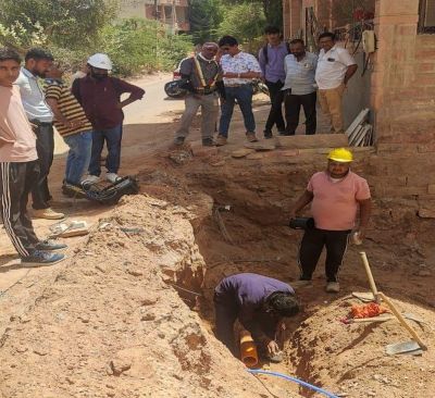 जानकारी के अनुसार खेतेश्वर नगर में जेसीबी की मदद से नरपत सिंह के मकान की नींव की खुदाई की जा रही थी। पास ही गैस पाइप लाइन निकलती है। नींव की खुदाई का पता लगने पर गैस पाइप लाइन कम्पनी के पेट्रोलर ने खुदाई रोकने का आग्रह भी किया था, लेकिन जबरन नींव खुदाई करने से गैस पाइप लाइन क्षतिग्रस्त हो गई। हाई प्रेशर लाइन होने से गैस का लीकेज होने लगा। काफी तादाद में गैस बह गई। इससे वहां हड़कम्प मच गया। कुड़ी भगतासनी हाउसिंग बोर्ड, झालामण्ड व अन्य कॉलोनियों में गैस की आपूर्ति बाधित हो गई।