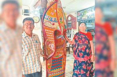 मोहनलाल बताते हैं कि उनकी मां जब 12-13 साल की थीं तभी से जूतियां बनाने और उन पर कसीदाकारी का काम कर रही हैं। हर बार कुछ न कुछ अलग करने के लिए मशहूर मां-बेटे की जोड़ी ने इस बार 8.5 फीट की जूती को आकार दिया है। इसके बाद चंद्रा देवी और उनके साथ दो-तीन अन्य महिलाओं ने कई दिनों तक काम कर इसको एम्ब्राइडरी से सजाया है। इसे बनाने में करीब 1.5 लाख रुपए लगे हैं। इससे पहले ये 6 फीट और 4.5 फीट आकार की जूती बना चुके हैं, लेकिन यह हाइट में अब तब सबसे बड़ी है। इस पर कसीदाकारी में मधुबनी आर्ट को फोकस किया गया है।