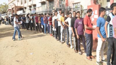 बोर्ड के नियमों के तहत परीक्षा शुरू होने से एक घंटे पहले परीक्षार्थियों को सेंटर में पहुंचना था। परीक्षा शुरू होने से काफी देर पहले ही सेंटर के बाहर प्रवेश के लिए अभ्यर्थियों की कतारें लग गईं। कई अभ्यर्थी दौड़ते-भागते पहुंचते नजर आए। देरी से पहुंचने पर महिला अभ्यर्थियों के आंसू निकल आए। पुलिस व निजी कम्पनी के कार्मिकों ने जांच के बाद सभी को प्रवेश दिया। इस दौरान अभ्यर्थियों के गले से मालाएं आदि उतरवा ली गईं।