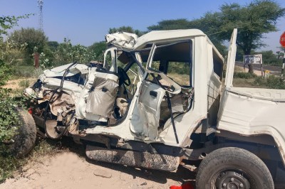 पुलिस ने बताया कि देर रात कंटेनर और बोलेरो कैंपर में जोरदार भिड़ंत हुई। इसमें बोलेरो कैंपर में सवार दो व्यक्तियों की मौत हो गई। वहीं एक अन्य घायल है। दोनों मृतक जैसलमेर के एका गांव निवासी बताए जा रहे हैं। वहीं हादसे के बाद मौके पर पहुंची पुलिस ने शव और घायल को अस्पताल पहुंचाया। इसके बाद दोनों गाड़ियों को मौके से हटाया गया। पुलिस ने मामले की जांच शुरू कर दी है।