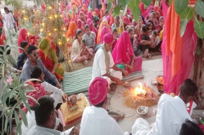 Rajasthan News: संभेला में सेतरावा से आए लोग जहां बाराती थे, वहीं जैतसर व पदमपुर ग्रामवासियों की ओर से वधु पक्ष की रस्में अदा की गईं।