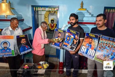 क्रिकेट प्रेमियों ने सारंग नाथ महादेव मंदिर में भारत की जीत के लिए आरती की। हाथ में भारतीय क्रिकेट टीम के कप्तान रोहित शर्मा की तस्वीर लिए क्रिकेट प्रेमी भगवान शिव का दूध से अभिषेक किया और भारत की जीत के लिए प्रार्थना किए।