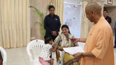 Woman reached Chief Minister court with her daughter कानपुर की महिला अपनी बेटी का स्कूल में एडमिशन के लिए मुख्यमंत्री के जनता दरबार पहुंची। मुख्यमंत्री ने बच्ची से पूछा कि क्या बनना चाहती हो। बच्ची ने बताया कि वह डॉक्टर बनना चाहती है।