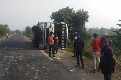 कटनी. सोमवार तडक़े सुबह 3.45 बजे कुठला थाना क्षेत्र अंतर्गत लमतरा ब्रिज से कन्हवारा जाने वाली रोड पर एक तेज रफ्तार बारातियों से भरी बस पलट गई। बस के पलटते ही घायल बारातियों में चीख-चित्कार मची गई। राहगीरों ने घटना की जानकारी पुलिस को दी। सूचना मिलते थे पुलिस मौके पर पहुंची। घायलों को अस्पताल भिजवाया। घायलों में 35 से अधिक लोग हैं, जिनमें 6 की हालत गंभीर है, जबकि बस में 60 लोग सवार थे। पुलिस ने प्रकरण दर्ज करते हुए मामले को जांच में लिया है।