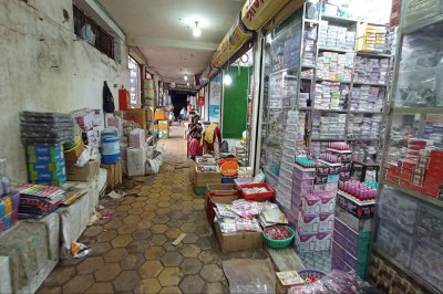 यह तस्वीर शहर के मुख्य मार्ग स्थित दक्षिणमुखी हनुमान मंदिर के सामने वाली गली की है। यहां पर स्थित शॉपिंग कॉम्पलेक्स के बेसमेंट में दुकानें सज रहीं हैं। लगभग एक दर्जन दुकानें यहां पर खुली हुई हैं। कारोबारियों द्वारा सुरक्षा को ताक में रखते हुए नियमों की धज्जियां उड़ाई जा रही हैं, लेकिन जिम्मेदार बेपरवाह बने हुए हैं।