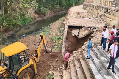 कटनी. जल गंगा संवर्धन अभियान के बीच जिला प्रशासन ने सोमवार को खिरहनी क्षेत्र स्थित प्राकृतिक नाले रपटा में बिल्डर द्वारा किए गए अवैध निर्माण को तोडऩे की कार्रवाई की। दो जेसीबी मशीनों की मदद से बिल्डर द्वारा नाला के अंदर किए गए करीब 3 मीटर चौड़ी और 200 मीटर लंबी रिटेनिंग वॉल के अवैध निर्माण को तोडऩा शुरू किया गया है। एसडीएम की अगुवाई में दो तहसीलदार सहित राजस्व अधिकारियों की टीम ने नगरनिगम के अतिक्रमण अमले के साथ हुई कार्रवाई शुरू की है। यह अवैध निर्माण तोडऩे में प्रशासन को करीब दो दिन का समय और लगेगा। कार्रवाई के दौरान बिल्डर ने दुगाड़ी नाला में बनाई जा रही रिटेनिंग बाउंड्रीवाल को लेकर सवाल खड़े किए। जानकारी के अनुसार सोमवार सुबह शहर व ग्रामीण तहसीलदार सहित राजस्व अधिकारियों की टीम अतिक्रमण हटाने के लिए मौके पर पहुंची। यहां नगरनिगम से जेसीबी की पर्याप्त व्यवस्था न होने के कारण कार्रवाई में विलंब हुआ। इसके बाद करीब दो बजे एक और जेसीबी मशीन पहुंची और कार्रवाई शुरू की गई। देरशाम एसडीएम प्रदीप मिश्रा भी मौके पर पहुंचे और निर्धारित माप के अनुसार नाले के प्राकृतिक बहाव में किए गए अवैध निर्माण को तोडऩे कहा।