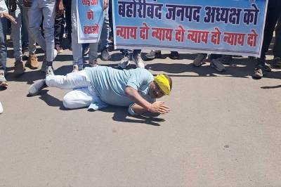 mp news: मध्यप्रदेश के कटनी में बहोरीबंद जनपद सीईओ के खिलाफ कार्रवाई की मांग करते हुए भाजपा समर्थित जनपद अध्यक्ष ने अनोखा विरोध किया। जनपद अध्यक्ष कलेक्ट्रेट के गेट से लुढ़कते हुए कलेक्टर के चैंबर तक गए लेकिन इसके बावजूद कलेक्टर चेंबर से बाहर नहीं निकले। कलेक्टर ने बाहर न आने पर जनपद अध्यक्ष व जनपद के प्रतिनिध वहीं पर धरने पर बैठ गए जिन्हें एडीएम करीब आधे घंटे तक समझाने की कोशिश करती रहीं लेकिन वो नहीं माने।