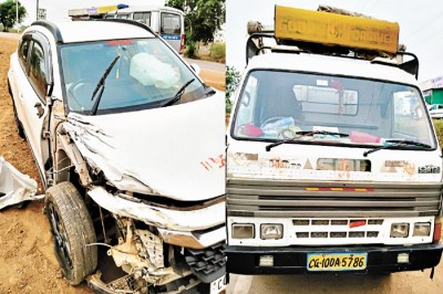 CG Accident: कार और माजदा में जबरदस्त टक्कर, बाल-बाल बचे लोग