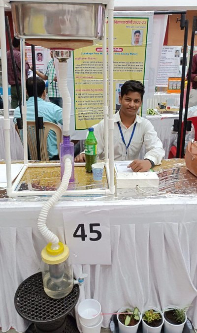 कक्षा 8 वीं के सक्षम मुकाती ने गृहणियों की समस्या को हल करने वाला मॉडल बनाया था। बर्तन धोते समय बेसिन का पानी पाइप को चोक कर देता है। लीकेज की समस्या होती है। सक्षम ने वेस्ट प्लास्टिक बॉटल को पाइप से जोड़कर ऐसा मॉडल तैयार किया था कि जिससे पाइप आसानी से साफ हो सके। बेसिन का पानी फिल्टर होकर बागवानी में उपयोग किया जा सकता है। इसमें नल की टोटी, पारदर्शी बॉटल, चारकोल, रुई, रेत और पत्थरों का प्रयोग किया गया। यह मॉडल प्लास्टिक प्रदूषण को कम करने और पानी के पुन: उपयोग में सहायक है।