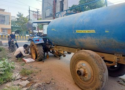शनिवार को लवकुश नगर में टैंकर से जलापूर्ति करने पहुंचा ट्रैक्टर व टैंकर पंक्चर हो गए। मोहल्ले के लोगों के पूछने पर चालक ने बताया कि वह फिल्टर प्लांट से पानी लेकर लवकुश नगर में आया था। लौटते समय ट्रैक्टर-टैंकर का पिछला पहिया पंक्चर हो गया। सुधार करने में तीन घंटे लगे। बताते हैं कि नगर निगम में इमरजेंसी सेवा के लिए दस निजी ट्रैक्टर-टेंकर लगे हुए हैं। इसमें कइयों टायर में गोटियां तक नहीं है। ऐसे खटारा ट्रैक्टर-टैंकरों से जलापूर्ति की व्यवस्था की गई है। इससे जनता परेशान परेशान है। मामले में निगम आयुक्त का कहना है कि ऐसे ट्रैक्टर-टैंकर के भुगतान पर रोक लगाई जाएगी।