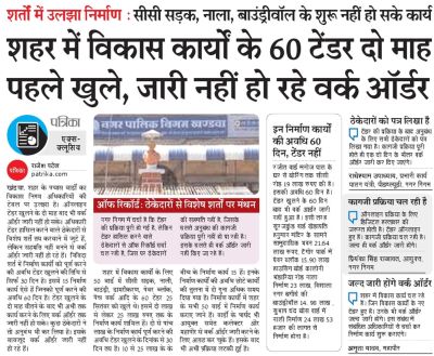इनका कहना... प्रियंका सिंह राजावत, आयुक्त, नगर निगम, ऑनलाइन प्रक्रिया के लिए डिजिटल हस्ताक्षर की जरूरत होती है। टेंडर ऑनलाइन हुए हैं। कागजी प्रक्रिया चल रही है। जल्द ही वर्क आर्डर जारी होंगे।