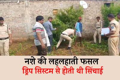 Drug cultivation caught in Khargone: खेत में लहलहा रहे थे गांजे के 6-10 फीट ऊंचे गांजे के पौधे, एक पौधे को उखाड़ने दो पुलिसवालों को लगाना पड़ा जोर...।