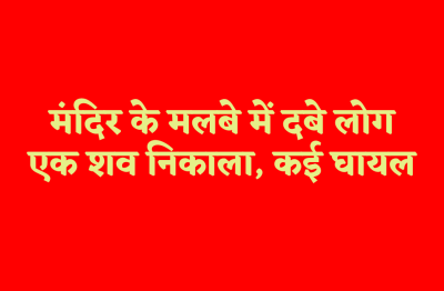 मध्यप्रदेश में एक मंदिर ढह गया जिसके मलबे में कई लोग दब गए। प्रदेश के खरगोन में यह हादसा हुआ। बताया जा रहा है कि मंदिर में निर्माण कार्य चल रहा था। इलाके में तेज बारिश के कारण मंदिर धराशायी हो गया। इससे कई लोग दब गए। निर्माणाधीन मंदिर गिरने से इलाके में हाहाकार मच गया। हादसे के बाद मलबे में दबे लोगों को निकालना शुरु किया गया। पता चला है कि मंदिर के काम में लगे कुछ मजबूर दब गए जिनमें से एक की मौत हो गई है। हादसे में चार लोग घायल भी हुए।