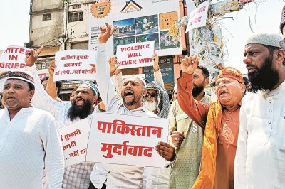 यह किसी पार्टी, धर्म विशेष की बात नहीं बल्कि यह देश रक्षा की बात मानते हुए हर धर्म,मजहब के लोग एक होकर आतंकवाद के विरोध में नारेबाजी करते इन दिनों नगर में देखे जा सकते हैं। शुक्रवार की दोपहर मुस्लिम समाज के लोगों ने जामा मस्जिद के सामने जमकर नारेबाजी करते हुए आतंकवाद का पुतला फूंका व पीड़ित परिवारों को न्याय दिलाने के लिए ऐसे लोगों को सरेआम मौत की सजा देने की बात कही।