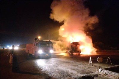 जहां हमने जनसहयोग से आधे घण्टे के भीतर ही आग पर काबू पा लिया था। हालांकि ट्रक में लोड नींबू की बोरियां आग की चपेट में आ गई हैं। साथ ही ट्रक का एक हिस्सा बुरी तरह जलकर राख हो गया था। किसी प्रकार की बड़ी दुर्घटना न हो इसके मद्देनजर कोंडागांव से दमकल वाहन भी बुलवाया गया था। जिसकी मदद से रात में ही आग पर पूरी तरह काबू पा लिया गया था। इस स्थिति पर काबू पाने में पुलिस पेट्रोलिंग स्टाफ का अहम योगदान रहा।