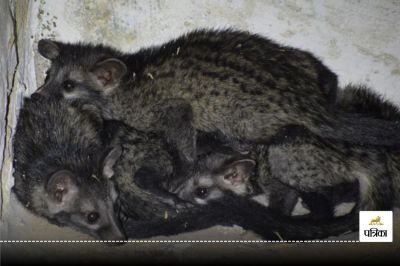 Korba News: कोरबा जिले के कटघोरा वनमंडल के मुंडाली गांव में एक दुर्लभ एशियन पाम सिवेट मिली। यह मादा सिवेट अपने 5 बच्चों के साथ एक घर की धान की कोठी में रह रही थी।