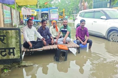 दुकानदारों ने नगर निगम के पूर्व सभापति रामनारायण सोनी के नेतृत्व में चौक के करीब खाट निकालकर पानी में बैठ गए। उन्होंने विरोध प्रदर्शन शुरू किया। साथ देने के लिए क्षेत्र के पार्षद के पति भी पहुंचे। पूर्व सभापति रामनारायण ने बताया कि हर साल बारिश में यहां जल जमाव की स्थिति निर्मित होती है।