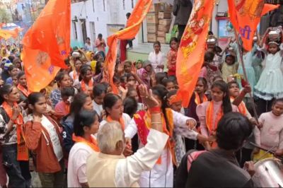 मुख्य वक्ता कवि राजेन्द्र गौड़ ने युवाओं को सही मार्ग पर चलने तथा महिलाओं को अपने बेटों को संघ में भेजने की बात कही। दीक्षा नागर ने भी अपने विचार व्यक्त किए। इससे पहले राम जानकी मंदिर से डीजे पर बजते भजनों के बीच जुलूस शुरू हुआ। जुलूस का जगह-जगह लोगों ने पुष्पवर्षा कर स्वागत किया।