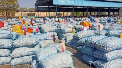 Bhamashah Mandi News: भामाशाहमंडी में मंगलवार को सभी कृषि जिंसों की आवक लगभग 1 लाख 75 हजार कट्टे की रही। सोयाबीन 50, धान पूसा 150, धान (1718) 100 रुपए तेज रहा। लहसुन लगभग 8000 कट्टे की आवक रही। भाव 2000 से 8500 रहे। बॉक्स पैकिंग 4000 से 8800 रहा। लहसुन 200 रुपए मंदा रहा। किराना बाजार में खाद्य तेलों में स्थिरता रही।