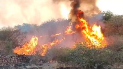 मुकुन्दरा हिल्स टाइगर रिजर्व में अज्ञात कारणों से आग लग गई है। जंगल सूखा होने से आग तेजी से फैल गई।डीएफओ समेत वन विभाग के अधिकारी मौके पर है। दमकलें आग बुझाने में जुटी है।