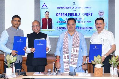 कोटा के प्रस्तावित नए ग्रीनफील्ड एयरपोर्ट को लेकर शासन सचिवालय में दोपहर में मुख्यमंत्री भजनलाल शर्मा की अध्यक्षता में मीटिंग हुई। इसके बाद एआईए और राज्य सरकार के बीच एमओयू हुआ। इस दौरान सीएम भजनलाल शर्मा के अलावा यूडीएच मंत्री झाबर सिंह खर्रा, शिक्षा मंत्री मदन दिलावर, मुख्य सचिव सुधांश पंत, मुख्यमंत्री एसीएस शिखर अग्रवाल सहित कई अधिकारी मौजूद रहे। बता दें कि कोटा एयरपोर्ट लोकसभा स्पीकर ओम बिरला का ड्रीम प्रोजेक्ट है, जिसके लिए लंबे समय से प्रयास जारी थे। कोटा शहर के निकट शम्भूपुरा में 439 हैक्टेयर में नया एयरपोर्ट बनाया जाएगा।
