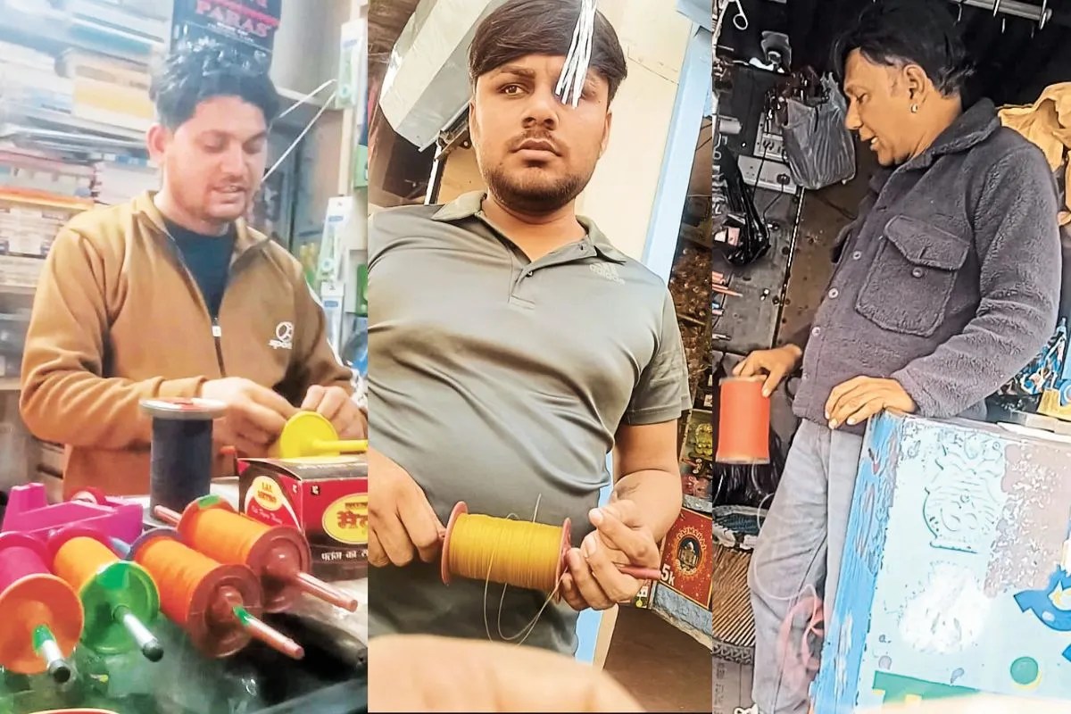 मुक्ति मार्ग स्थित दुकान पर पहले सादा मांझा दिखाया गया, लेकिन बातचीत बढ़ते ही दुकानदार बोला अब बच्चों की पहली पसंद चाइनीज मांझा है। इसके बाद उसने अंदर रखे रोल भी दिखाए और उनकी खूबियां गिनाईं। उसका कहना था कि पतंग में अब ज्यादा मुनाफा नहीं रहा, असली कमाई तो मांझे में ही है।