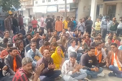 घटना की जानकारी मिलने पर व्यापारी गुस्से में आ गए और हिंदू परिषद और बजरंग दल के कार्यकर्ताओं के साथ मंदिर के बाहर धरने पर बैठ गए। व्यापारी "हर-हर महादेव" और "बम-बम भोले" के नारे लगाते हुए हनुमान चालीसा पढ़कर विरोध प्रदर्शन कर रहे थे।