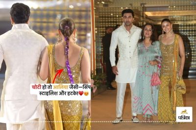 सोशल मीडिया पर आलिया भट्ट का लुक वायरल हो रहा है। इस वीडियो में आलिया पीले रंग के शरारे में नजर आ रही हैं, जबकि उनके साथ पति रणबीर कपूर भी बेज रंग के आउटफिट में दिखे। इसके अलावा, सोनी राजदान ने भी बेहद स्टाइलिश लुक में अपनी मौजूदगी दर्ज कराई। आलिया का ट्रेडिशनल लुक बेहद खूबसूरत था, लेकिन लोगों की नजर उनके आउटफिट से ज्यादा उनके बालों पर गई। आलिया का हेयरस्टाइल काफी अलग और यूनिक था, जिसे देख फैंस हैरान होकर पूछने लगे कि बालों में आखिर क्या लटका लिया है।