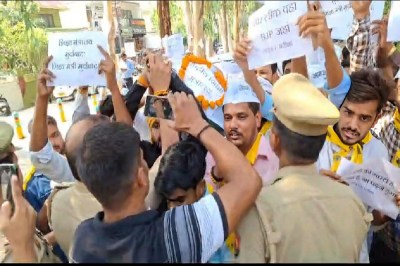 आम आदमी पार्टी की उत्तर प्रदेश छात्र विंग ने NEET पेपर लीक मामले में विरोध प्रदर्शन का आयोजन किया। इस मामले में न्याय की मांग करते हुए उन्होंने जोरदार नारेबाजी की और शिक्षा प्रणाली में सुधार की बात की।