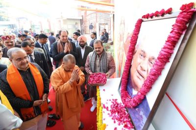 Atal Bihari Vajpayee Birthday: 'भारत रत्न' और पूर्व प्रधानमंत्री अटल बिहारी वाजपेयी जी की 100वीं जयंती पर उत्तर प्रदेश के मुख्यमंत्री योगी आदित्यनाथ ने भारतीय जनता पार्टी (भा.ज.पा.) के प्रदेश कार्यालय में एक विशेष प्रदर्शनी का उद्घाटन किया। इस अवसर पर मुख्यमंत्री ने अटल जी के चित्र पर पुष्पांजलि अर्पित करते हुए उनके अद्वितीय व्यक्तित्व और कृतित्व को श्रद्धांजलि दी।