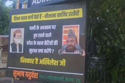 इस होर्डिंग के जरिए उन्होंने अखिलेश यादव पर निशाना साधा। होर्डिंग पर लिखा गया है, '' पत्नी के अपमान पर चुप रहने वाले प्रदेश के बहन-बेटियों की सुरक्षा क्या करेंगे? धिक्कार है अखिलेश जी।'' डिंपल यादव पर मौलाना साजिद रशीदी द्वारा आपत्तिजनक टिप्पणी के खिलाफ इस पोस्टर को लगाया गया है।
