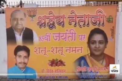 मुलायम सिंह यादव की होर्डिंग पर उनकी बहु भाजपा नेत्री और उत्तर प्रदेश राज्य महिला आयोग की उपाध्यक्ष अपर्णा यादव की तस्वीर लगी है। तस्वीर बीजेपी कार्यकर्ता चौधरी विवेक बालियान ने लगवाई है। होर्डिंग में मुलायम सिंह ने 85वीं जयंती पर श्रद्धांजलि दी गई है।