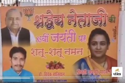 इस होर्डिंग पर यूपी महिला आयोग की उपाध्यक्ष अपर्णा यादव की तस्वीर भी है। बता दें कि इस होर्डिंग को बीजेपी कार्यकर्ता चौधरी विवेक बलियान ने लगवाया है। होर्डिंग पर लिखा है- 'श्रद्धेय नेताजी को 85वीं जयंती पर शत-शत नमन।’ इस कदम ने राजनीतिक गलियारों में चर्चा छिड़ गई है। हालांकि राज्य में बीते कुछ दिनों से पोस्टर पालिटिक्स जमकर हो रही है।