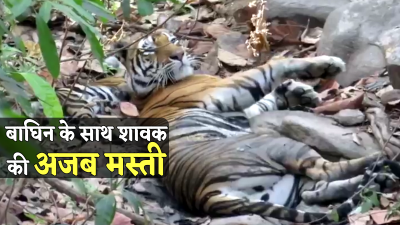 बाघिन नीलिमा अपने नन्हे शावक के साथ पेड़ की छांव में अठखेलियां करती नजर आई। इनकी मस्ती का एक वीडियो खासा पसंद किया जा रहा है।