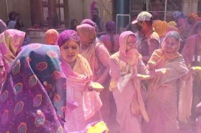 मथुरा के वृंदावन स्थित गोपीनाथ मंदिर में बुधवार को विधवा माताओं ने फूल और गुलाल से होली खेली। माताओं के साथ विदेशी महिलाएं भी झूम उठीं।