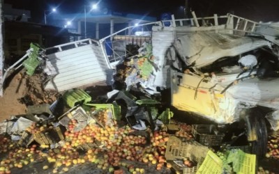प्रत्यक्षदर्शियों के अनुसार, टक्कर इतनी भीषण थी कि पिकअप वाहन के परखच्चे उड़ गए। कैरेट में भरे टमाटर सड़क पर ताश के पत्तों की तरह बिखर गए। हादसे में पिकअप चालक और उसका साथी गंभीर रूप से घायल हो गए।