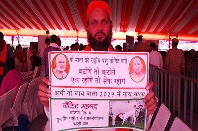 गुरुवार को मिर्जापुर नगर के बीएलजे इंटर कॉलेज के खेल ग्राउंड पर मुख्यमंत्री योगी आदित्यनाथ की जनसभा में यह आकर्षण का केंद्र बने रहे हैं। हाथों में गौ माता को राष्ट्रीय पशु घोषित करो लिखा हुआ तख्ती लिए तौकीर अहमद ने बटोगे तो कटोगे एक रहोगे तो सेफ रहोगे के साथ बाकायदा अभी तो चाय वाला 2029 में गाय वाला लिखकर चर्चा के केंद्र बिंदु में रहे हैं। प्रधानमंत्री एवं मुख्यमंत्री योगी आदित्यनाथ की तस्वीर के साथ उनके लिखे हुए यह बोल जनसभा में आने वाले लोगों के लिए न केवल आकर्षण का केंद्र रहा है, बल्कि वह लोगों के लिए किसी सेल्फी पॉइंट से कम नहीं रहे हैं।