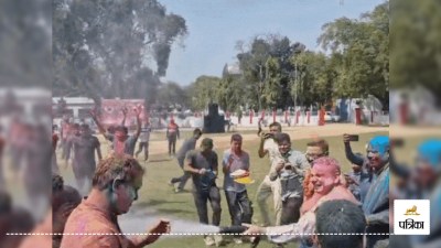 DM SSP Holi in Moradabad: यूपी के मुरादाबाद में पुलिस लाइन में पुलिस की होली चल रही है। डीएम अनुज सिंह और एसएसपी सतपाल अंतिल फायर ब्रिगेड की गाड़ियों के पाइप से होली खेली।