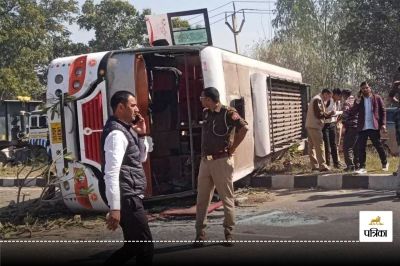 Accident: बस पलटी तो चीख पुकार मच गई। आश-पास खेतों में काम कर रहे लोग दौड़कर मौके पर पहुंचे और पुलिस को खबर की। बाद में गाड़ी के शीशे तोड़कर अंदर फंसे बारातियों के बाहर निकाला गया।