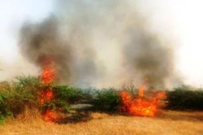 नावां शहर (नागौर). उपखण्ड मुख्यालय के जाब्दीनगर रोड पर गुरुवार दोपहर को फिर एक बार आग लग गई। जिसके कारण सरकारी भूमि पर विदेशी बबूल आग की भेंट चढ़ गए।