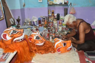 पहले ऐसे बनता है मुखौटा