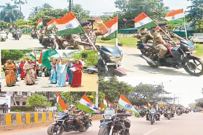 देशभक्ति के नारों और जयघोष से पूरा माहौल गूंज उठा। लोग अपने घरों की छतों और सड़क किनारे खड़े होकर इस नजारे को कैमरे में कैद करते रहे और पूरा शहर तिरंगे के रंग में रंग गया। इस मौके पर कमांडेंट भावेश चौधरी ने कहा तिरंगा सिर्फ एक झंडा नहीं, बल्कि देश की एकता, अखंडता और समान का प्रतीक है। इस मौके पर अभिज्ञान कुमार, दीपक सिंह, डॉ. राहुल चन्द्रन आरपी, अधीनस्थ अधिकारी और बड़ी संया मे मौजूद रहे।