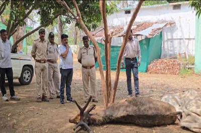 mp news: मध्यप्रदेश के नर्मदापुरम जिले के तवानगर के जंगल में बुधवार तड़के सुबह गोली मारकर एक नर सांभर का शिकार किया गया। वन विभाग को जैसे ही जंगल में शिकार की सूचना तो वन विभाग की टीम मौके पर पहुंची लेकिन शिकारी कार सहित भाग निकले। शिकारियों के भागने के बाद वन विभाग की टीम ने जंगल में सर्चिंग की तो एक नर सांभर मृत मिला है। वन विभाग ने आरोपियों के खिलाफ वन अधिनियम संरक्षण के तहत केस दर्ज किया है आरोपियों की तलाश में जुट गई है।