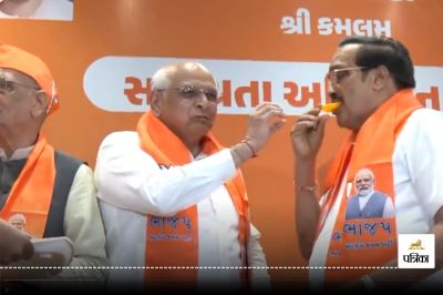 Haryana Election Result: हरियाणा में लगातार तीसरी बार बीजेपी (BJP) की सरकार बनने जा रही है। चुनाव आयोग की वेबसाइट के मुताबिक बीजेपी ने बहुमत का आंकड़ा पार कर लिया है। हरियाणा में बीजेपी की जीत को लेकर गुजरात में मुख्यमंत्री भूपेंद्र पटेल (Bhupendra Patel) की मौजूदगी में नेताओं ने जश्न मनाया। इस दौरान नेताओं ने एक-दूसरे को जलेबी भी खिलाई। बता दें कि आज हरियाणा विधानसभा चुनाव के नतीजों के दिन दिनभर जलेबी की भी चर्चा रही।
