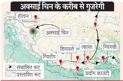 चीन की ओर तिब्बत-शिनजियांग के बीच 2000 किमी लम्बी नई रेल परियोजना को धरातल पर लाने की तैयारी की जा रही है। यह रेल लाइन चीन के कब्जे वाले भारत के अभिन्न हिस्से अक्साई चिन से गुजरेगी। लाइन का रूट वास्तविक नियंत्रण रेखा (एलएसी) के नजदीक है।