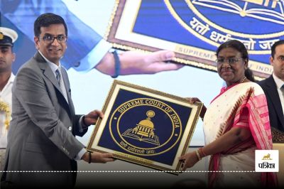 सुप्रीम कोर्ट (Supreme Court) की 75वीं वर्षगांठ के मौके पर राष्ट्रपति द्रौपदी मुर्मू (Droupadi Murmu) ने नए ध्वज और प्रतीक चिन्ह का अनावरण किया है। इस मौके पर मुख्य न्यायाधीश डीवाई चंद्रचूड़ (DY Chandrachud) भी मौजूद थे।